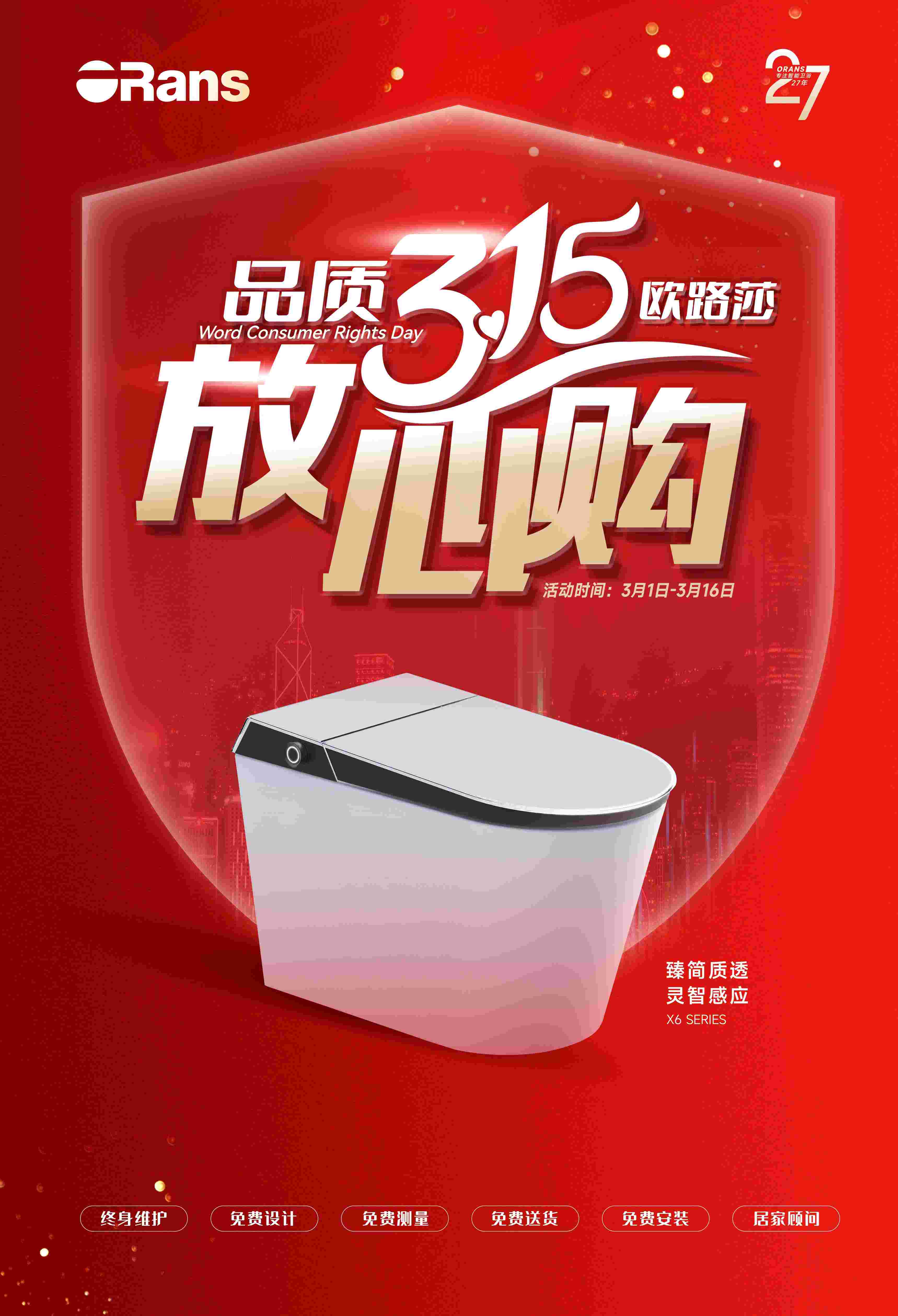 伴著和煦的春風(fēng),乘著國(guó)補(bǔ)的東風(fēng)!3月1日至3月16日,歐路莎衛(wèi)浴“品質(zhì)315,衛(wèi)浴放心購”全國(guó)煥新活動(dòng)正式啟動(dòng)!