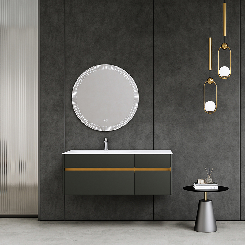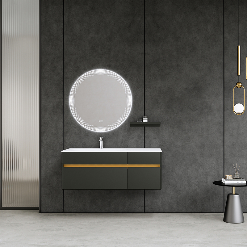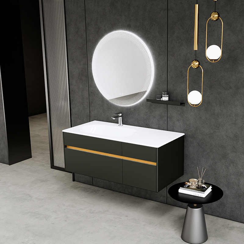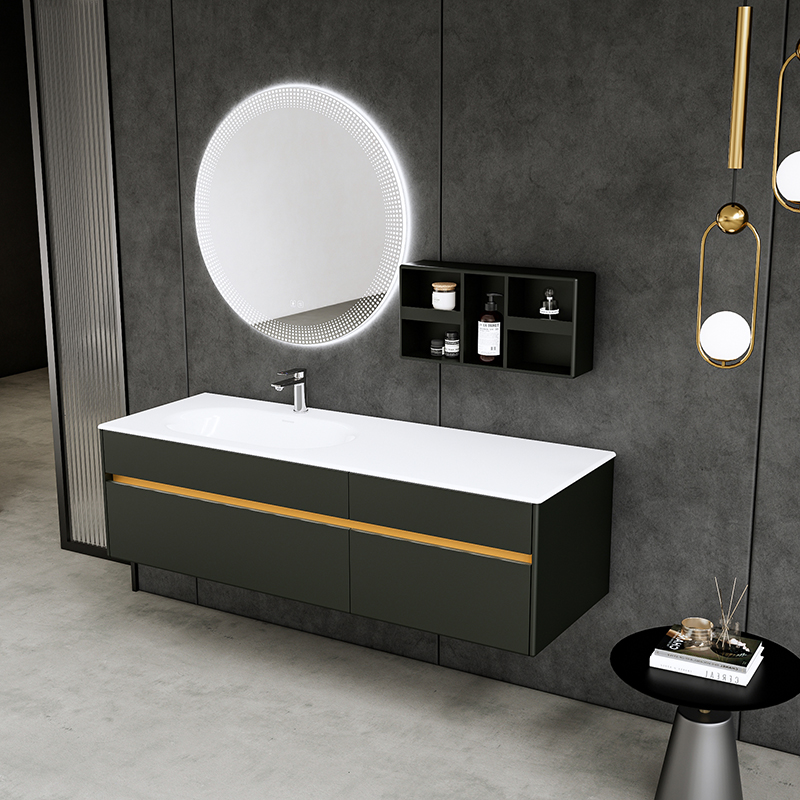 材質:白色可麗耐一體盆/銀煙霧柜體/智能鏡/多層實木