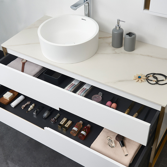 實(shí)木多層板,層層精工,防水防潮;304不銹鋼柜腳,防腐防銹;巖板臺面,優(yōu)質(zhì)亞克力臺上盆,易潔美觀;靜音液壓滑道,輕松緩沖,超承重;品質(zhì)鉸鏈,開合無憂。